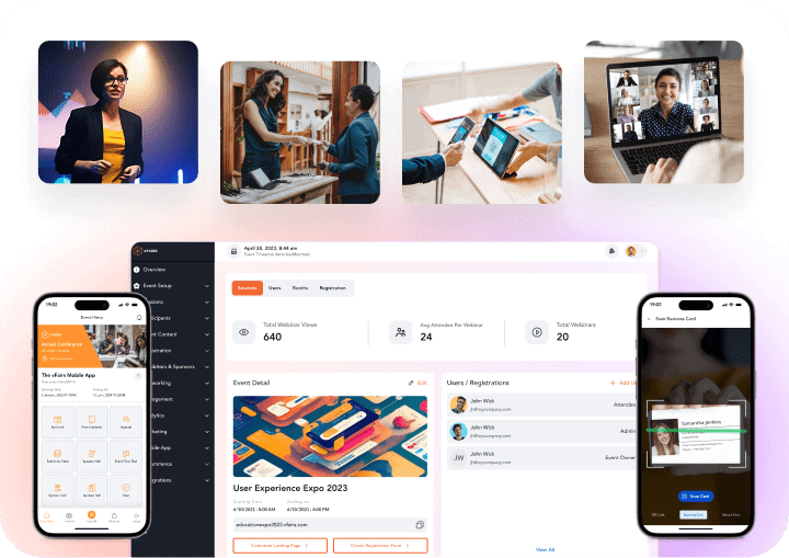 سواء كنت تقوم بتنظيم المعارض التجارية أو المؤتمرات أو معارض الوظائف ، يمكن لأدوات تسجيل الأحداث لدينا أن تتكيف مع احتياجاتك.